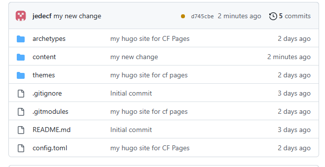 GitHub will then create a blank slate repository for you. Its URL is `https://github.com/jamieede123/HugoGiteaGithubCFPages`` in my case