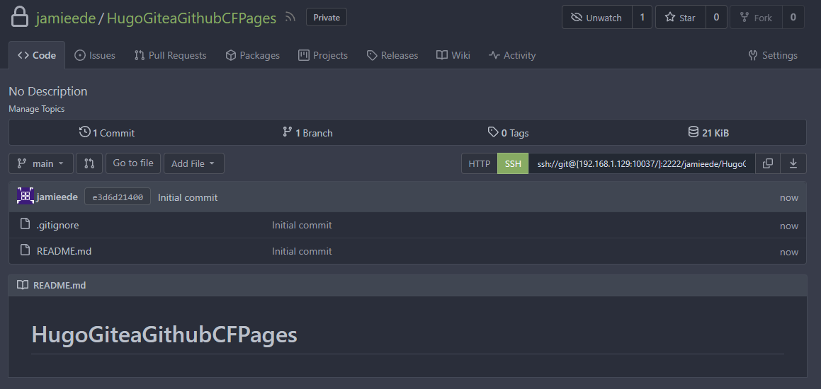 http://192.168.1.129:10037/jamieede/HugoGiteaGithubCFPages - Now, go to the