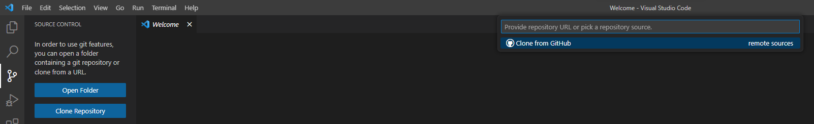 You may note that it shows Clone from Github. We shall not be doing that. In the text box above, Paste the URL for your repo from Gitea and then hit RETURN, mine is: