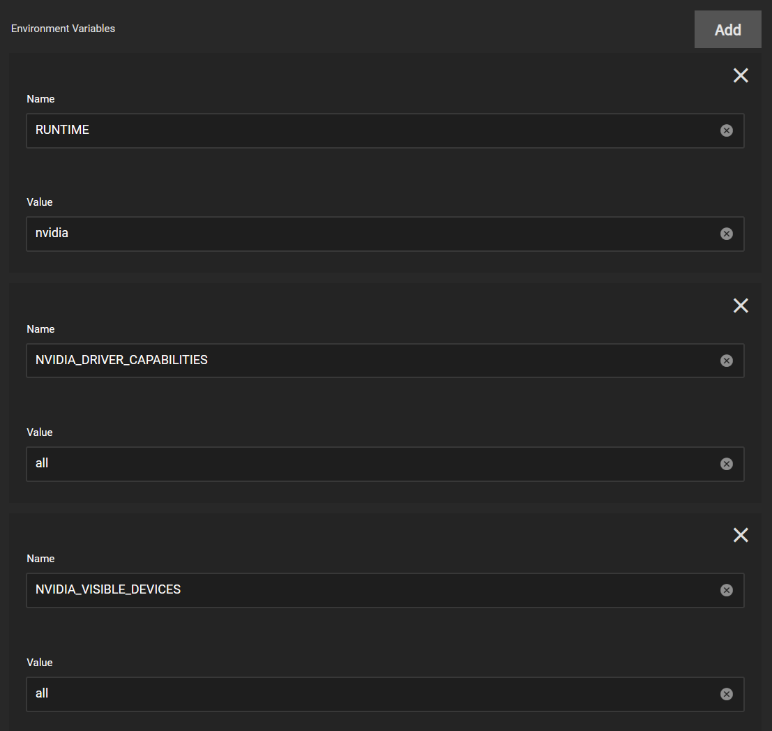 | NVIDIA_VISIBLE_DEVICES | all |